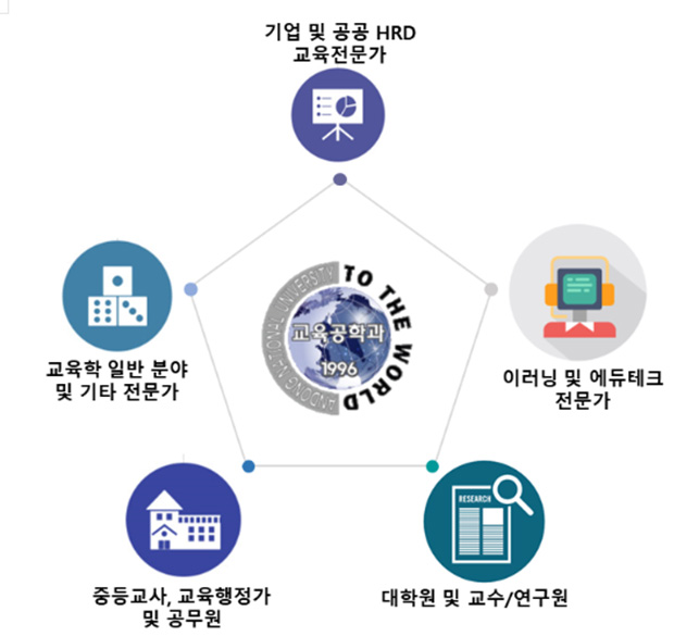 특히, 4차 산업혁명사회를 대비하여 AI, IoT, 빅데이터 등 첨단 기술을 교육분야에 적용하여 개인화된 맞춤형 학습환경을 설계하고 운영할 수 있는 교육공학전문가에 대한 사회적 수요는 더욱 많아지고 있습니다. 이제 교육공학은 ‘교육학’의 한 분과학문으로 간주되기보다는 미래 사회의 교육적 문제를 해결하는 처방적 학문분야로 대중적 인식이 확산되면서 전문인력에 대한 채용 필요성이 더욱 높아졌습니다.